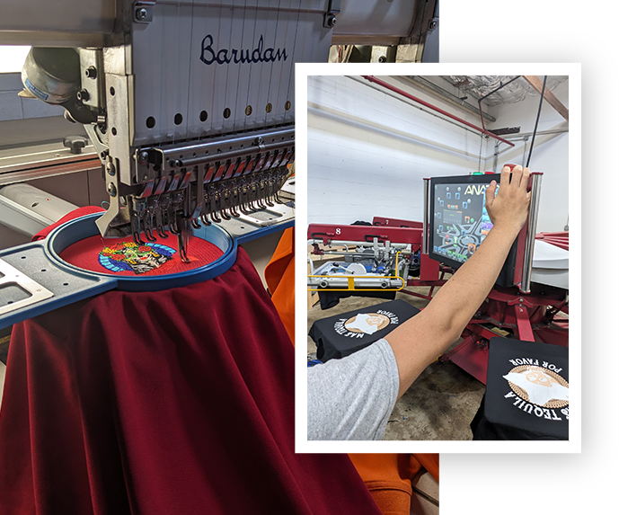 We used top of the line M&R and Anatole presses for Screen Printing and Barudan Machines for our Embroidery to deliver you the best quality available. We monitor our decoration processes every on every step to ensure all jobs are perfect and accurate. We assign a quality control team member to monitor every t-shirt that we produce.